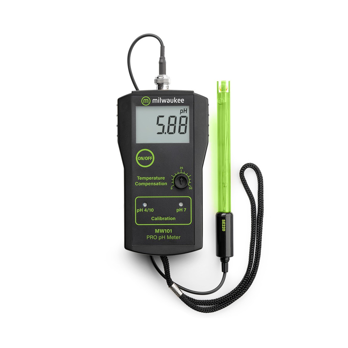Praktický a ekonomický přenosný pH metr vyniká svou cenovou dostupností a zároveň rychlým a přesným měřením. Své využití nachází při výuce, v zemědělství a zahradnictví, vodohospodařství a při enviromentálních analýzách. Přístroj disponuje velkým jednořádkovým LCD displejem.