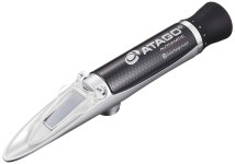 Refraktometr pro měření nízkých koncentrací ovocných šťáv, řezného oleje. Přístroj s automatickou teplotní kompenzací (ATC).